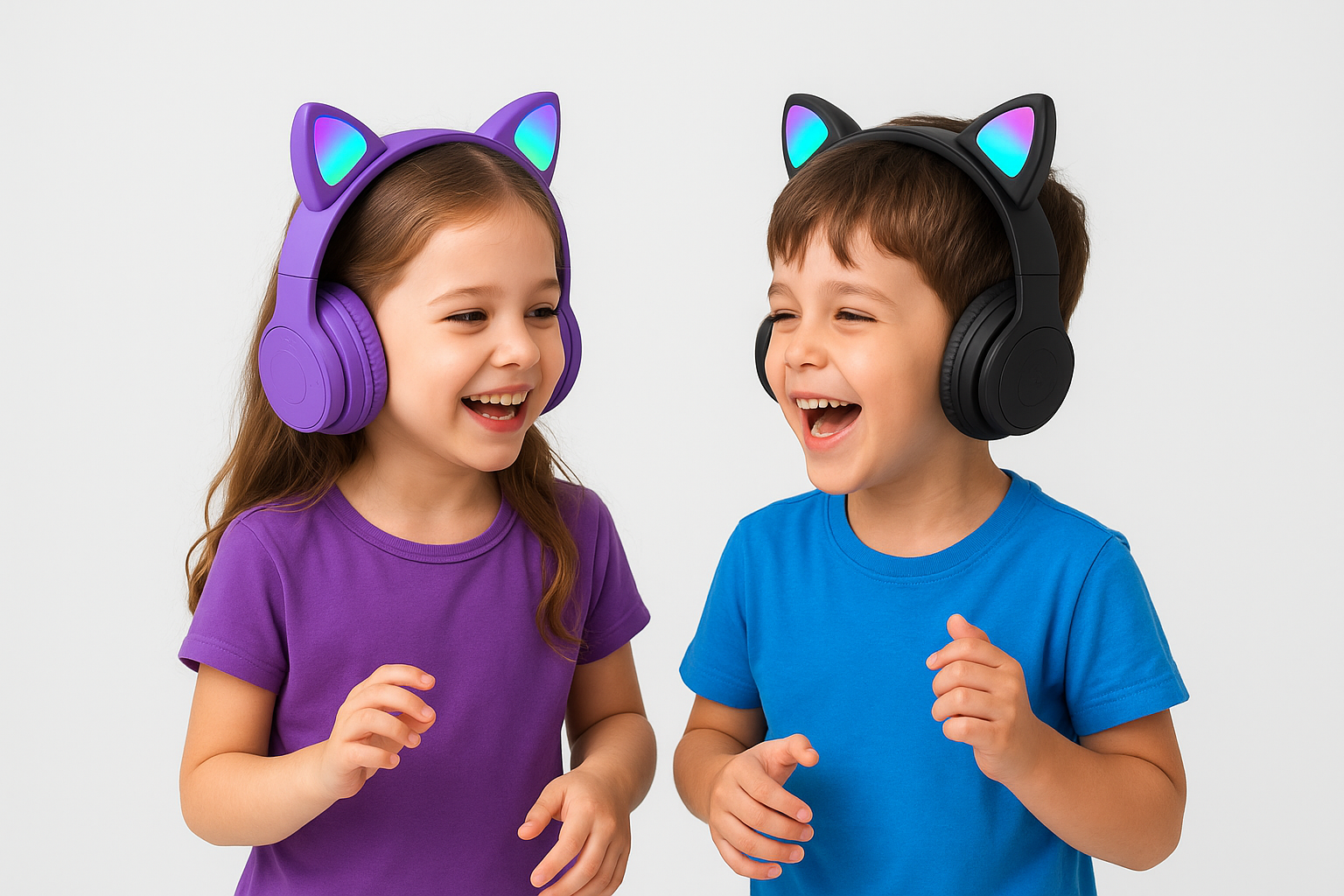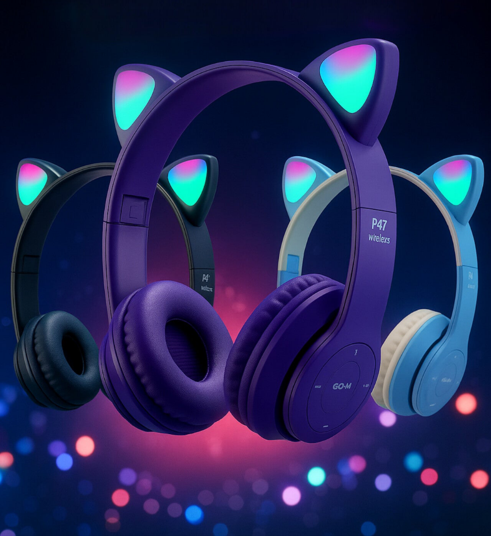 على شكل اذني قطة ، سماعات جميلة جدا و ذات تصميم جذاب وعصري و أضواء رائعة LED ...